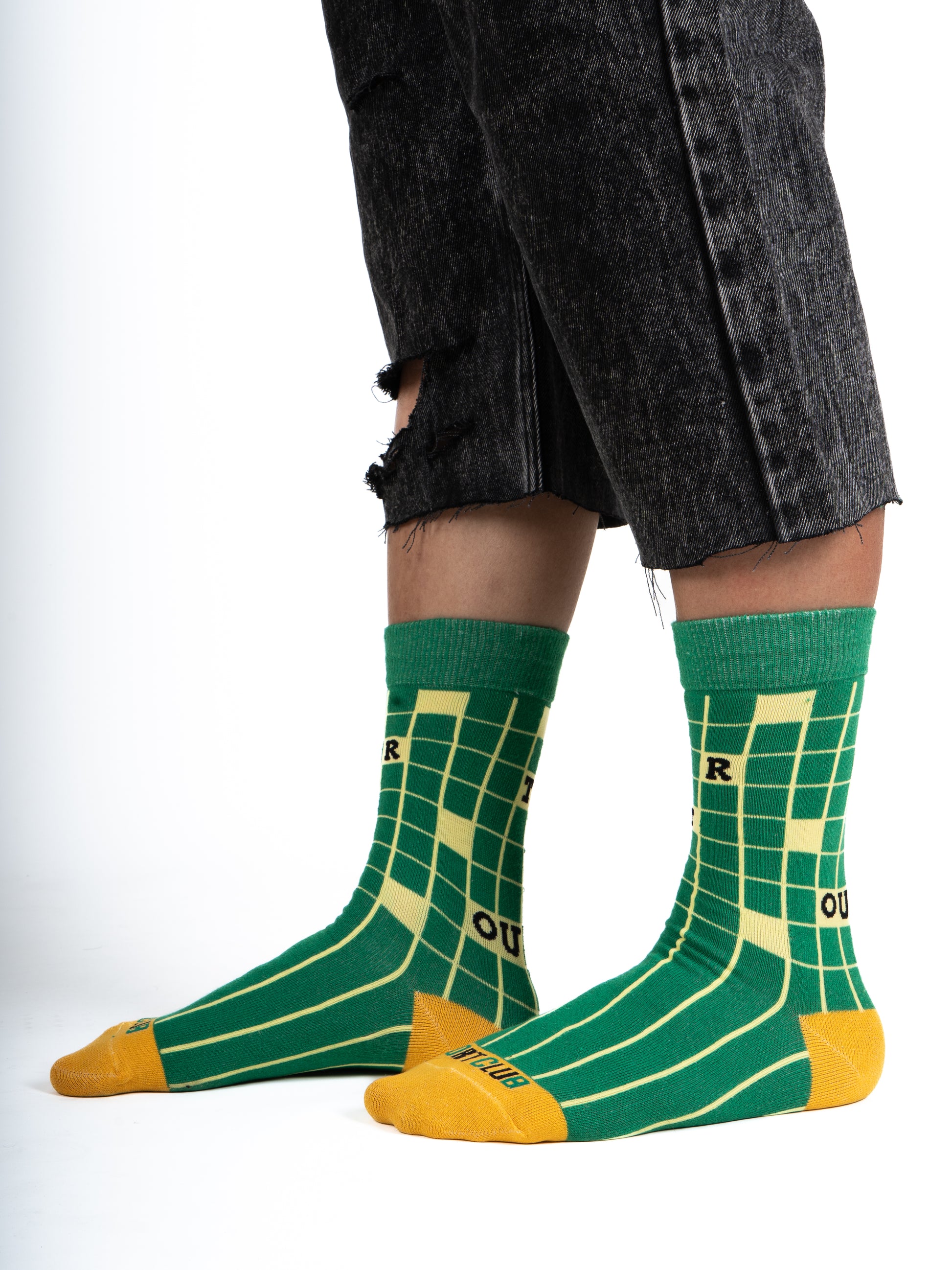 sort club check socks | green&yellow